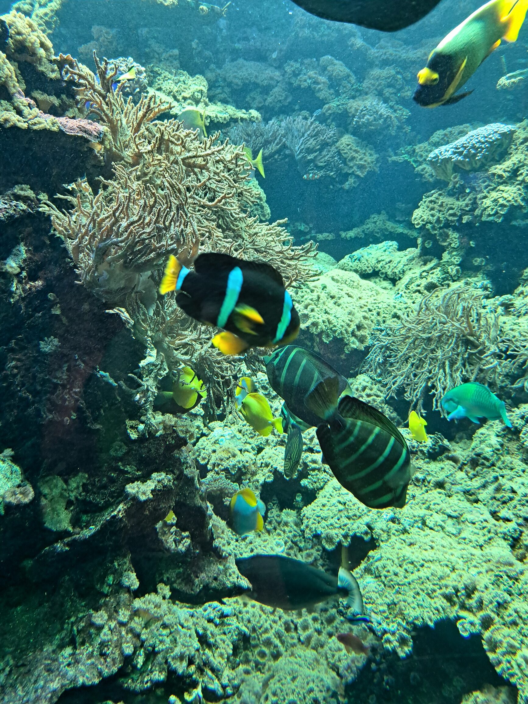 În secțiunea următoare, am avut ocazia să vedem „Amazonia”, o zonă care reproduce habitatul natural al pădurii tropicale. Aici am putut vedea crocodili, șerpi și alte viețuitoare exotice. Secțiunea a fost foarte bine amenajată, cu o mulțime de vegetație luxuriantă și cascăde care au adăugat o notă de autenticitate. După ce am explorat secțiunile „Reef Sharks”, „Amazonia” și „Tropical Ocean”, am mers la etajele superioare ale acvariului, unde am avut ocazia să vedem mai multe viețuitoare terestre și să învățăm mai multe despre conservarea vieții sălbatice.