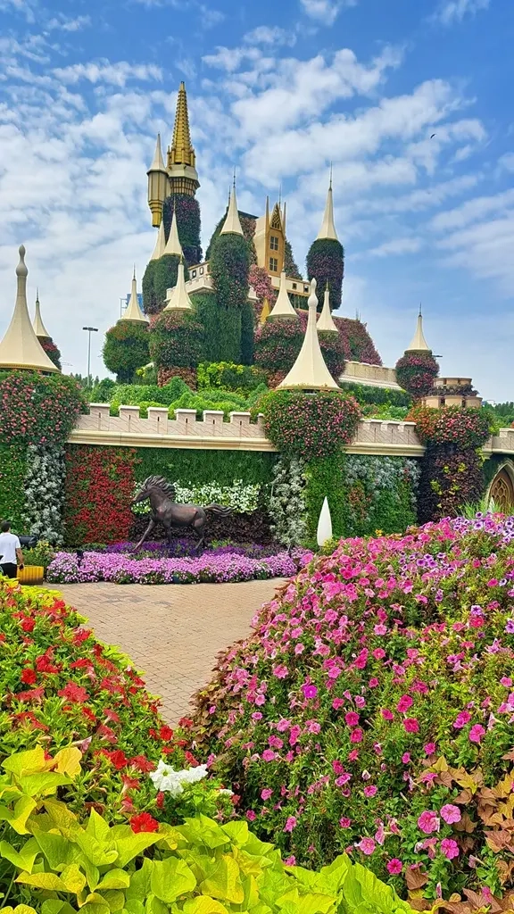 Dubai Miracle Garden este o adevărată minune – o grădină luxuriantă cu peste 150 de milioane de flori aranjate în forme spectaculoase. De la castele acoperite de petale la tuneluri florale feerice, fiecare colț este un decor de poveste perfect pentru fotografii memorabile.